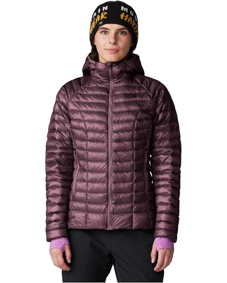 - Break through the cold wearing the Mountain Hardwear™ Ghost Whisperer™ Hoody. Made from ultra-lightweight ripstop fabric, this jacket features long sleeves, insulated hood with rear cinch with elastic binding to seal in warmth, zippered closure, brand logo on the left chest, two zippered hand pockets, and slim-fit silhouette. The first baffle at both cuffs is filled with synthetic insulation to prevent cuffs from wetting out.